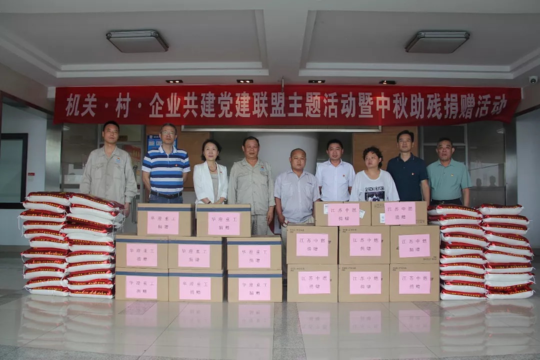 活动初,港口局、华澄重工、江苏中燃和六圩村等单位代表以及六圩村受捐残疾人员代表在公司办公楼参与了“庆中秋,献爱心”的主题捐助仪式,拉开了“机关﹒村﹒企业党建联盟共建主题活动”的序幕。捐助活动中以实物牛奶、大米、洗护日用品等向六圩村贫困残障人士表示关怀和中秋佳节前的慰问,使他们感受到党组织的温暖,六圩村范书记向爱心企业善举表达了诚挚谢意。