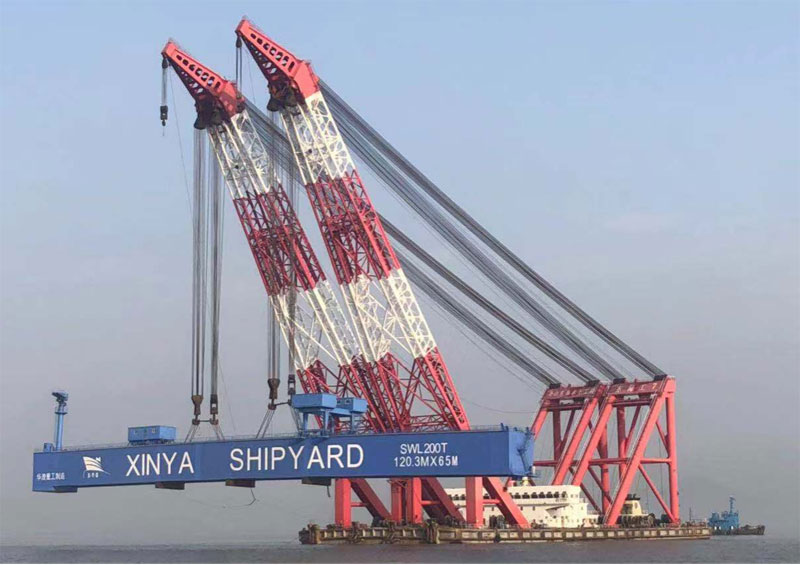 此次签订的500t龙门吊,跨距162m,起升高度80m,跨越30万吨船坞及总装场地,龙门吊具备大件吊运、空中翻身、抬吊、行走等功能,特别适合修造船厂大型分段吊装作业。该龙门吊建造成功后,鑫亚船厂将具备22000TEU以上集装箱船及豪华邮轮的进坞修理能力,修船能力将再上新台阶。
